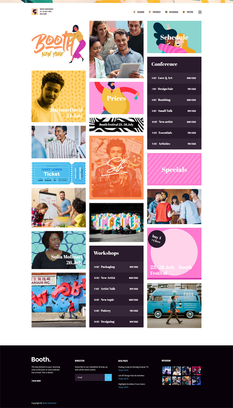 You get everything you need to announce and showcase your events. Booth is packed with a collection of layouts for presenting single events & event schedules.